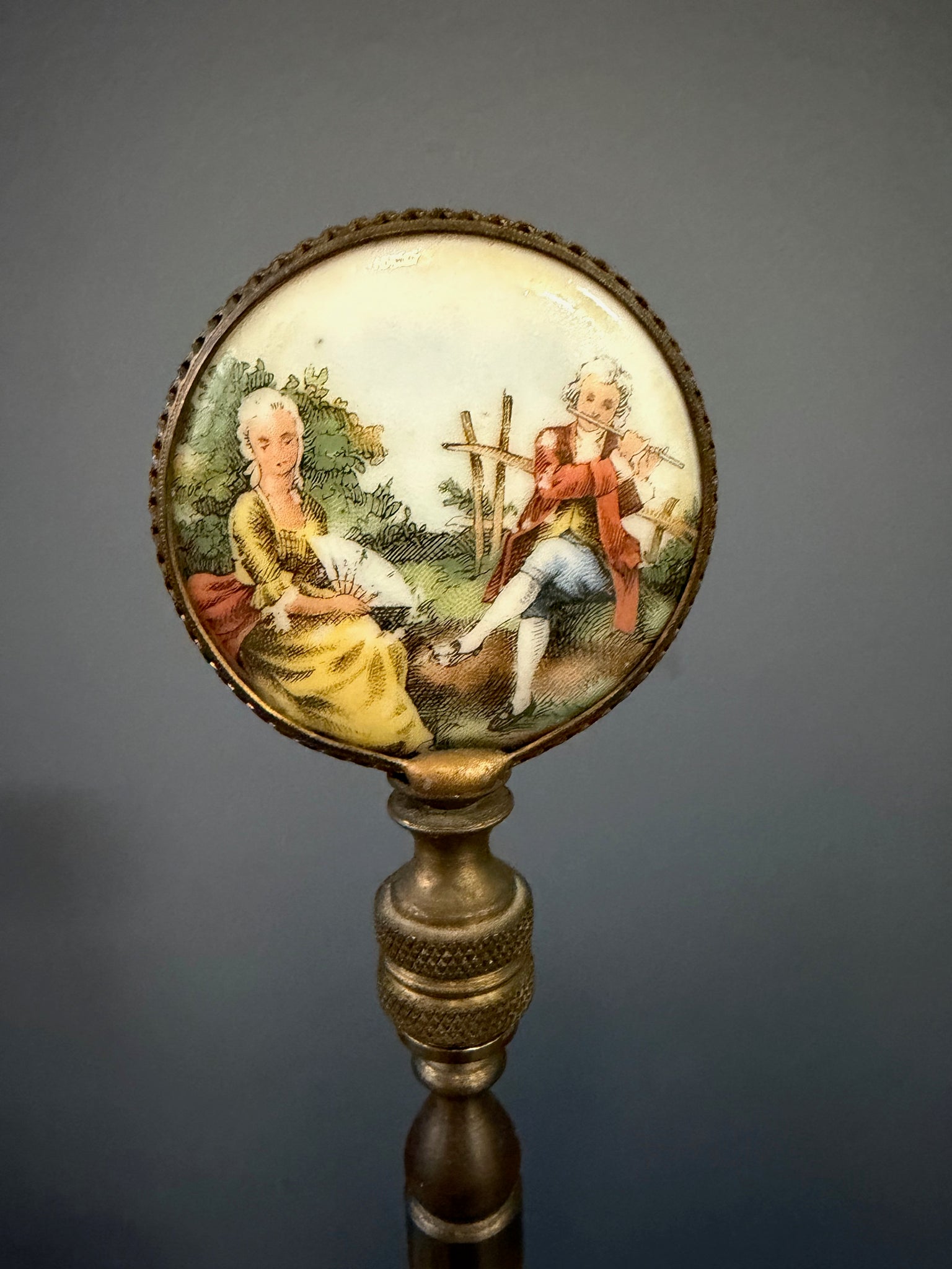 This striking Middle Eastern Qajar-period ceramic vase, dating from the late 19th to early 20th century, has been later converted into an elegant table lamp. The globular earthenware body is richly hand-painted with stylized floral motifs in shades of cobalt blue, turquoise, green, and ochre, set against a warm cream ground. The surface displays a fine craquelure consistent with age, adding depth and character to the decoration. Mounted with a brass lamp assembly featuring dual sockets and pull chains, the vase is topped with period-appropriate metalwork that complements its historic aesthetic. The lamp rests on a carved wooden base, elevating the form and providing visual balance. Together, the original Qajar ceramic and later lighting elements create a harmonious blend of decorative art and functional design. A distinctive and evocative piece, this lamp reflects the ornamental richness of Qajar-era craftsmanship while offering practical use, making it well suited for collectors of Middle Eastern art, antiques, or eclectic interior settings. In addition there is an Antique beautiful Brass Mounted Porcelain Lamp Finial W/Hand Painted Fragonard, Romantic Couple Cameo.