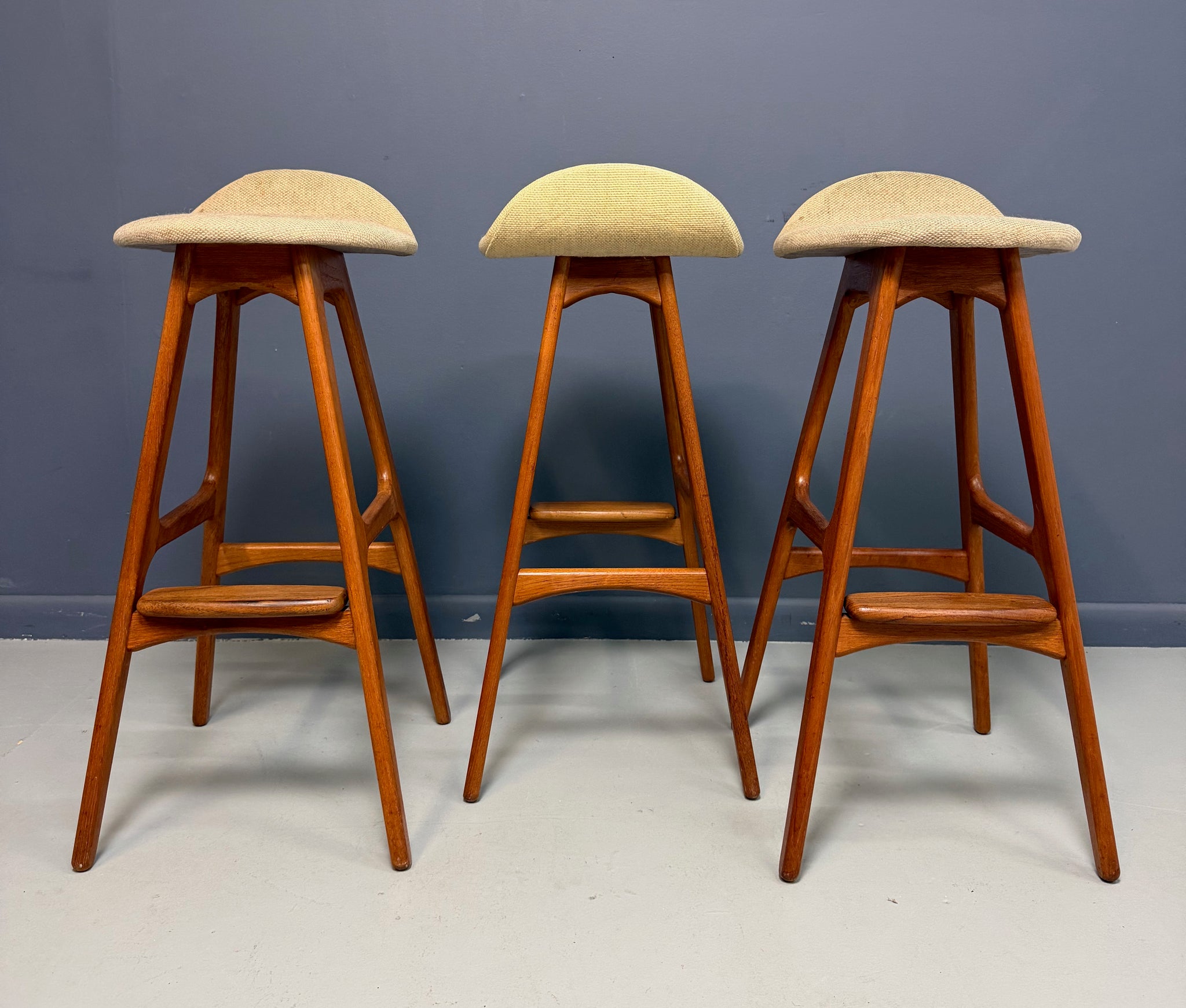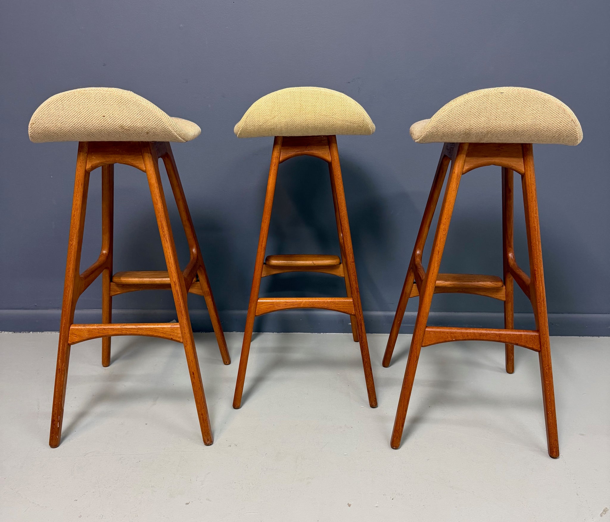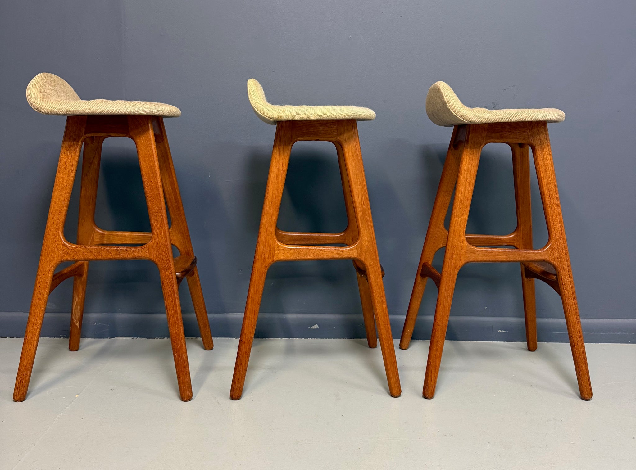 Trio of Model OD-61 Bar Stools by Erik Buch for O.D. Mobler, Denmark, c. 1960's